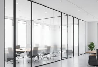 Custom glass partitions tailored for homes and commercial spaces alike.